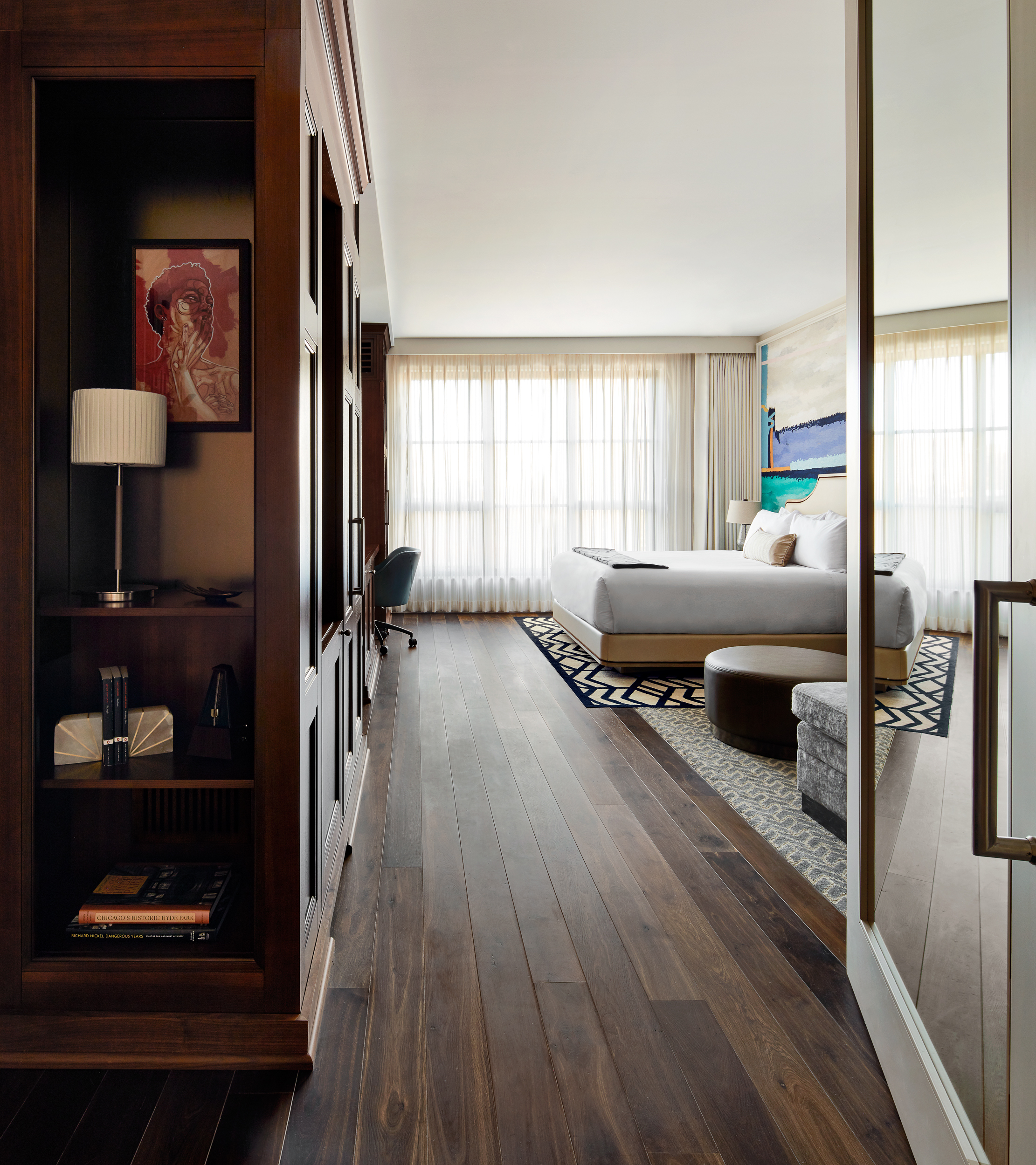 Our modernly appointed rooms infuse the community's academic and artistic contributions that inspire today's Hyde Park. Each room offers hardwood flooring throughout and large windows with a gorgeous Hyde Park view. Our Chicago accommodations offer generously sized marble tiled bathrooms with a large walk-in shower and luxury bath products.